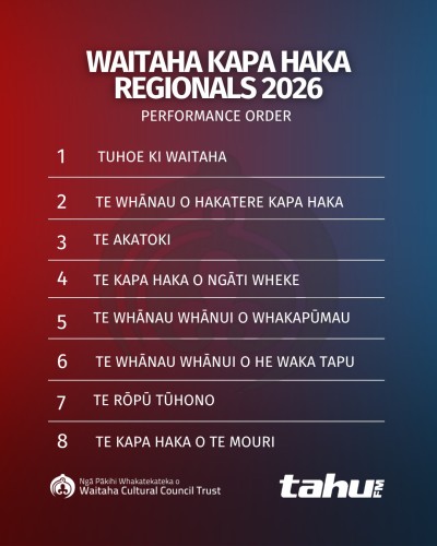 Kaihaka and haka fanatics from Te Waipounamu are abuzz after this month’s Waitaha Senior Kapa Haka draw announcement, with a record 19 kapa competing for five spots at Te Matatini.